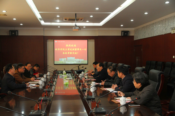 3月10日下午,新华学院王孝武副董事长、校长石秀和一行来今年会进行交流座谈,校党委书记刘新跃,研究生院常务副院长郑明东以及能环学院、计算机学院、管工学院等部门负责同志参加了交流座谈会。