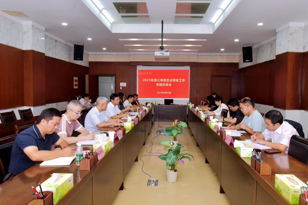9月30日上午,学校在佳山校区学术会议中心组织召开2025年第三季度定点帮扶工作专题协调会。校党委副书记王俊出席,马鞍山市体育局、共青团马鞍山市委员会、和县人民法院、郑蒲港新区自然资源和规划分局、马鞍山昌胜建筑安装有限公司、中国大地保险马鞍山中心支公司等六家帮扶团组单位负责人参加。