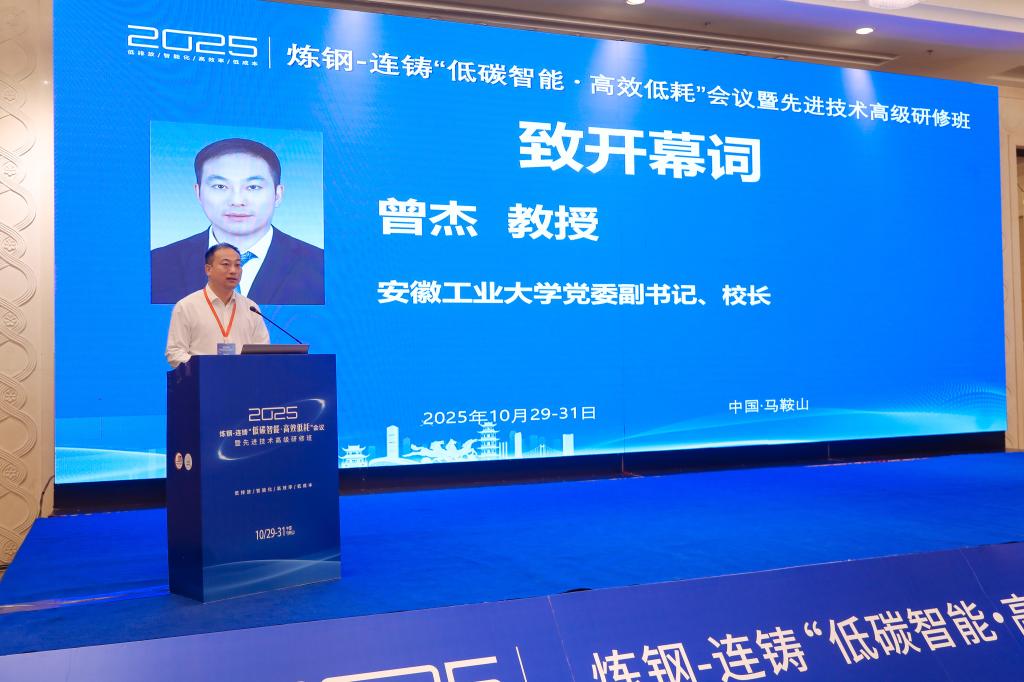 10月29日至31日,jinnianhui今年会、安徽省金属学会、jinnianhui今年会科技园、马鞍山钢铁有限公司等单位联合12家省级金属学会主办的2025年炼钢-连铸“低碳智能·高效低耗”会议暨先进技术高级研修班举行。校党委副书记、校长曾杰出席开幕式。来自武汉大学、浙江大学、大连理工大学、北京科技大学、东北大学、安徽大学等高校,以及宝钢、首钢、马钢、沙钢、六安钢铁、东方特钢、用友软件等企业的专家代表200余人参加活动,其中10余位国家重大人才计划入选者参加会议。开幕式由研究生院常务副院长、学科建设处处长、冶金工程学院院长龙红明主持。