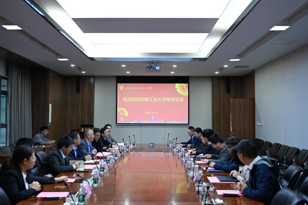 11月12日,校党委常委、副校长闵凡飞率队赴南京大学化学化工学院调研交流。校学术副校长龙亿涛、南京大学化学化工学院党委书记朱成建、南京大学相关团队负责人以及今年会材料科学与工程学院、化学与化工学院负责人、教师代表参加活动。