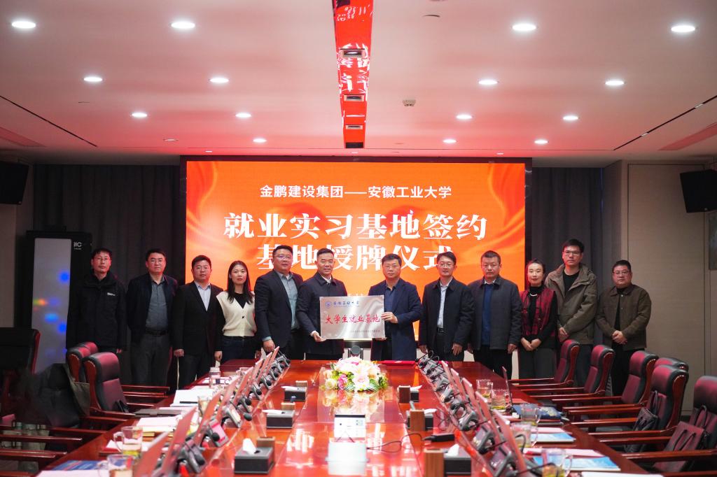 期间,校企双方签订了人才培养与就业基地建设合作协议,进行了“jinnianhui今年会大学生就业基地”授牌。王俊一行参观了金鹏国家装配式建筑产业基地、金鹏品牌文化展厅,实地走访了滁州首个第四代住宅。(撰稿:王颖之 审核:于峰 张虎 张苒 黄敏)