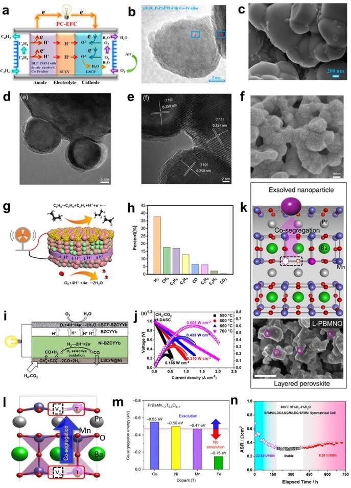 质子陶瓷燃料电池(PCFCs)是一种基于质子传导的新型能源转化技术。钙钛矿(ABO3)及其衍生材料在PCFCs电解质和电极研究中被广泛应用。如何进行此类材料的合理设计、提高其综合性能已成为PCFCs研究的重点。该工作深入分析了PCFCs的运行模式;阐述了钙钛矿结构材料作为PCFCs电解质和电极的工作机制;系统总结了PCFCs电解质、阴极、阳极的最新研究进展。研究工作进一步增强了对钙钛矿材料的深入认识,对此领域相关研究具有一定的参考意义,有助于推动PCFCs持续向前发展。