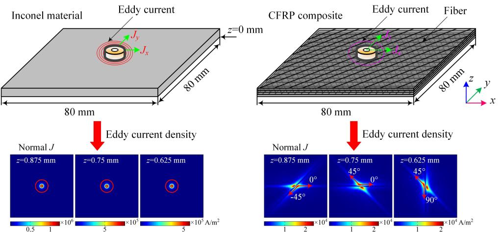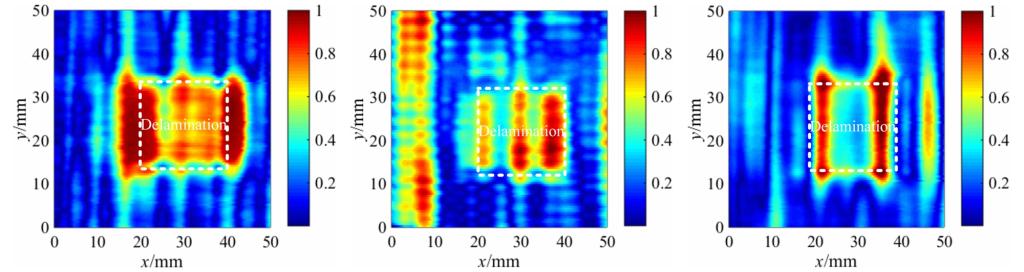 (三种典型CFRP铺层结构(单向板、正交板、多向板)分层损伤涡流检测的结果)