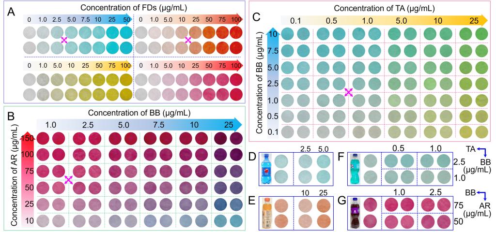 随着人们生活水平不断提高,食品添加剂和食品新鲜度相关的食品安全问题越来越受到重视。人工食品染料甚至被作为一种全球性营销策略而广泛应用于各类食品,同时被多种染料着色的食品随处可见。然而,几乎所有人工食品染料都不能为人体提供营养,其中多数还具有时间和剂量依赖性毒性,甚至致癌致畸。因此,染料的分析检测对于食品安全意义重大。然而现有染料检测技术,尤其是多种染料同步检测,极度依赖于传统的光谱、色谱、质谱等仪器分析方法,不仅繁琐耗时,分析成本和技术门槛高,也不适用于现场即时检验;与此同时,食品新鲜度与食品安全和质量控制密切相关,而缺乏方便可靠的非接触式新鲜度检测策略同样是食品行业面临的一大问题。因此,开发面向多染料同步快检和非接触式食品新鲜度评估的可视化分析技术意义重大。
