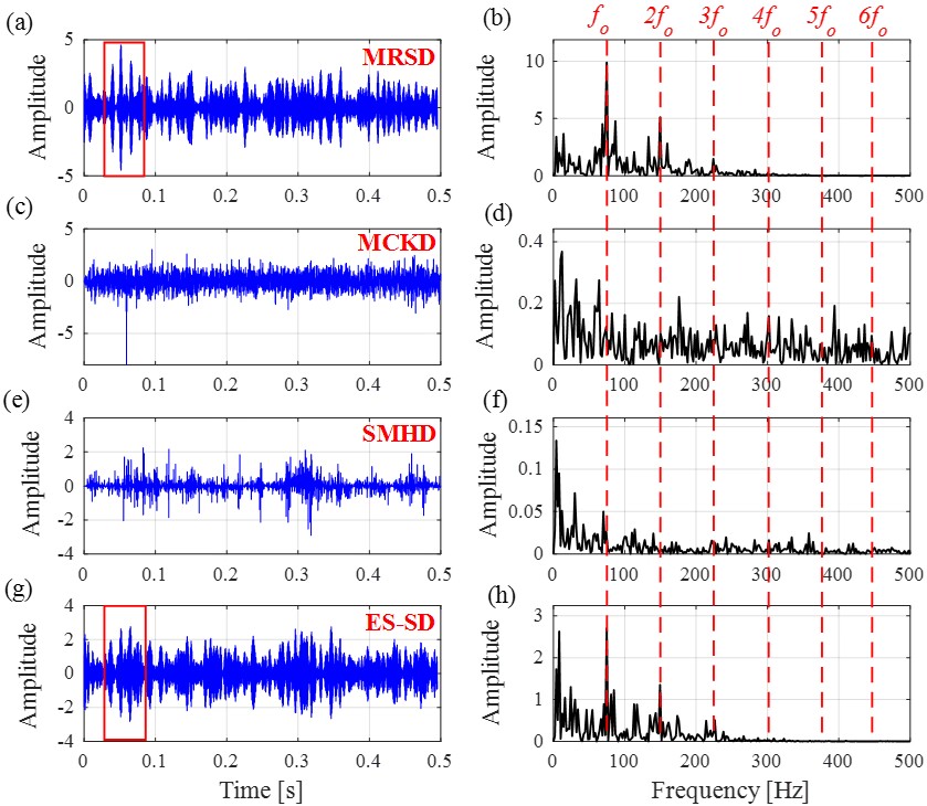 为了克服机械设备状态特征评估指标伪单调性的问题,本研究设计了一种最大Ramanujan谱信噪比解卷积(MRSD)方法。MRSD通过v-Ramanujan谱为微弱状态特征评估提供最佳平面,提高了状态特征评估指标的准确性和噪声鲁棒性;设计了v-Ramanujan频谱信噪比指标,并将其作为目标函数更新滤波器,提高算法的降噪性能。相关研究成果发表在《IEEE Transactions on Industrial Informatics》,今年会为论文唯一单位,机械工程学院程健博士为论文第一作者,潘海洋副教授为通讯作者,郑近德教授为合作作者。
