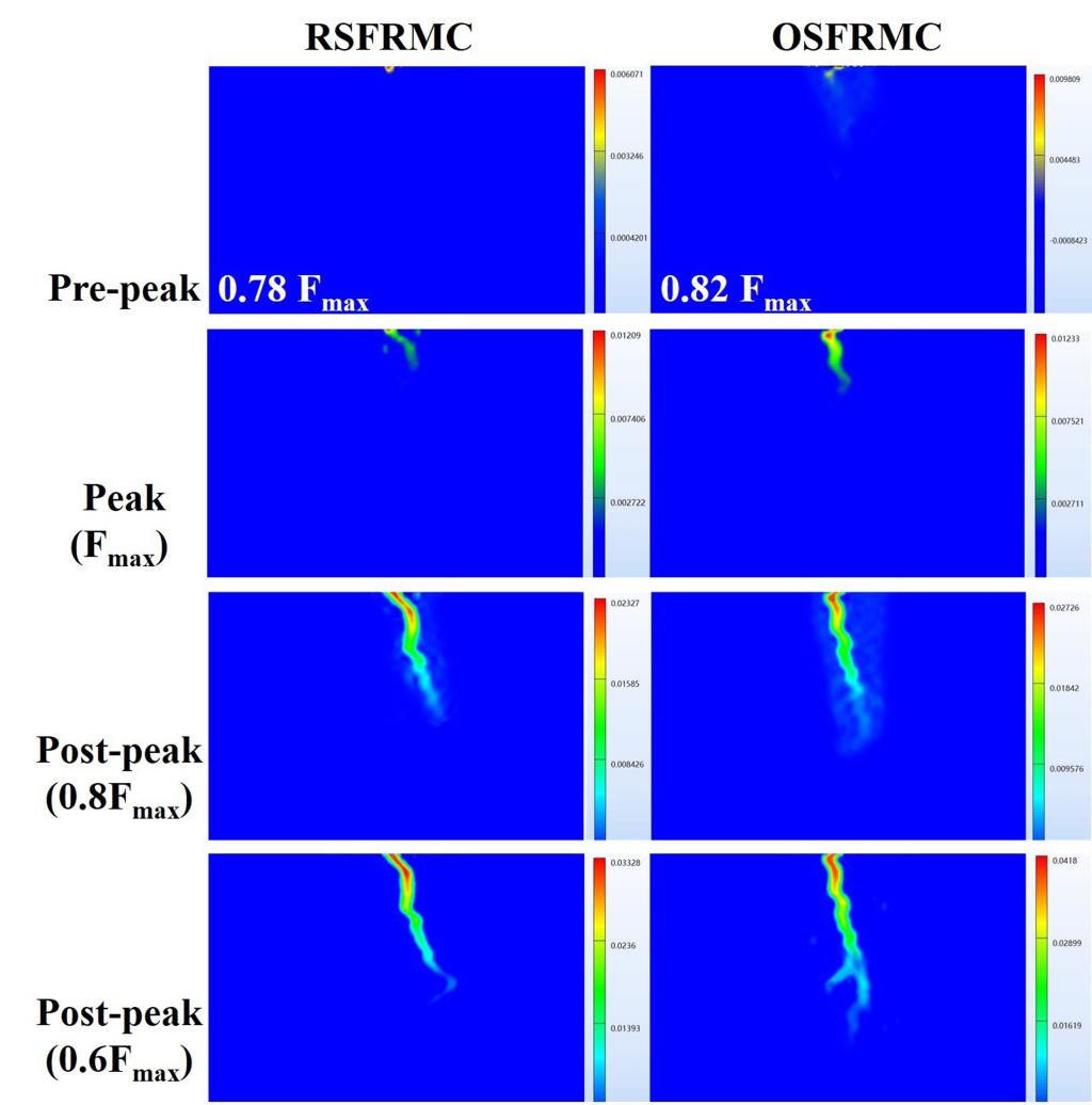 (楔形劈裂浇注料试样X轴方向上的应变图像)