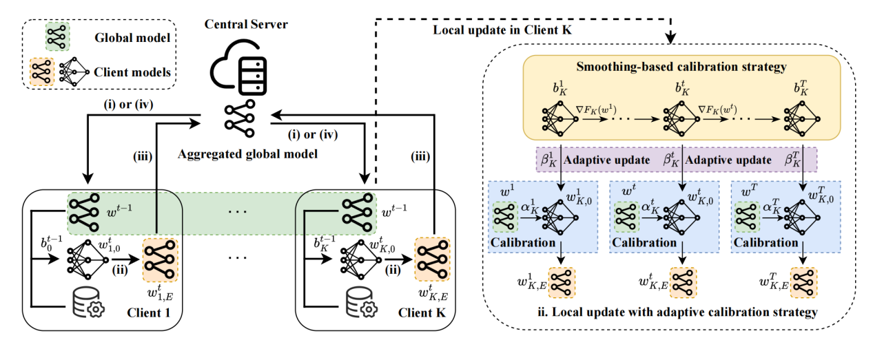 (pFedCal算法整体结构图)