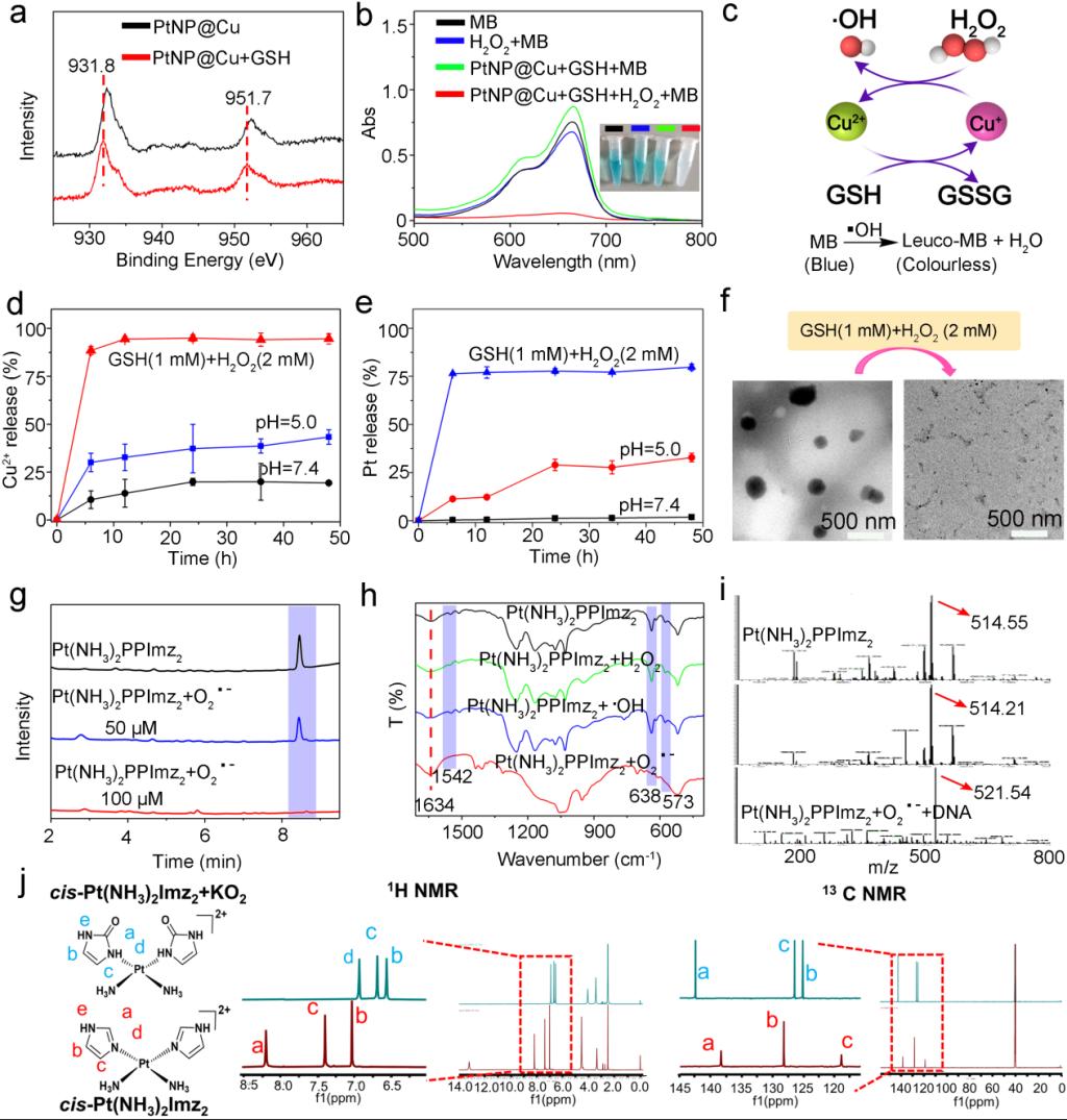 (双锁保护的纳米药物PtNP@Cu在体外级联催化氧化释放药物的表征)