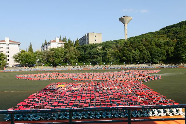 1200名参训新生组成的大型方队,用文字和图案致敬祖国,祝福学校,弘扬伟大抗疫精神,展现新时代青年学子昂扬向上的风采。