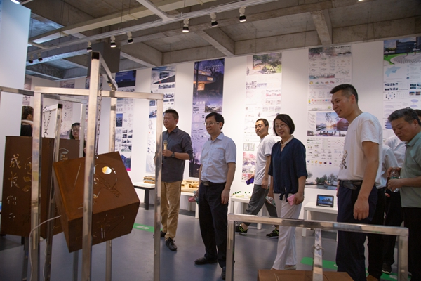 魏先文宣布“六月流萤 击壤而歌”系列活动开幕,并与领导嘉宾一同参观了2021届本科生毕业设计作品展。魏先文指出,艺术与设计学院毕业设计作品展已经成为独具特色的校园文化品牌活动,为校园文化建设和师生人文素养提升作出了积极贡献。同学们以独特的视角与语言创作出大量反映现实生活与时代需求的设计作品,很好地将现代艺术与传统文化相结合,让更多的人感受到美育的氛围。