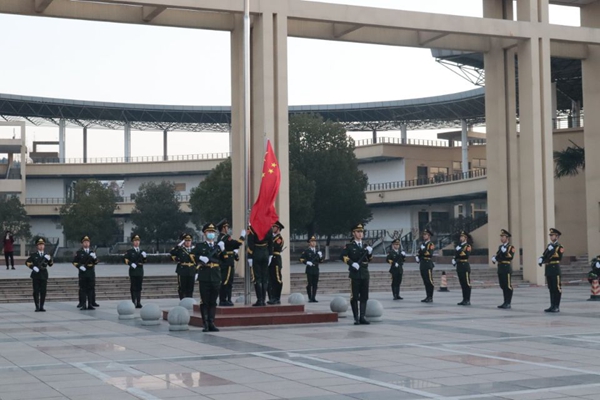 1月1日上午,今年会在秀山校区主教学楼广场举行升国旗仪式,迎接2021年新年的到来。安全保卫部、机械工程学院、建筑工程学院300多名师生代表驻立现场,共同观看庄严而神圣的升旗仪式。