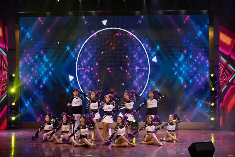 晚会在诗朗诵《我们的青年时代》中拉开帷幕,校大学生艺术团的舞蹈《我们都是追梦人》展现了当代青年不忘初心、怀揣梦想、勇往直前的精神风貌;校街舞队的街舞《舞动青春》绚丽多姿、热情洋溢,以青春之我闪烁出活力光彩;歌伴舞《强国一代》、《少年中国说》、《我的舞台》表达了新时代青年将满腔热血倾注于不懈奋斗的坚定决心;合唱曲目《唱支山歌给党听》讴歌了党的光辉历程和丰功伟绩;社团联伴舞团倾情演绎的《机器人舞蹈》将青春朝气与科技元素相融合;师生合奏的二胡表演《战马崩腾》曲调激昂、气势磅礴;健美操《青春飞扬花球啦啦》将场内气氛推向高潮;外国留学生和校园十佳歌手共同带来的《刚好遇见你》完美诠释了联结世界、相约未来的完美愿景;民族舞蹈《山村新颜》生动地描绘出新时代美好乡村发生的变化。晚会在教师四重唱《再一次出发》把对党的祝福蕴含在深情的歌声中,掌声和欢呼声经久不息。