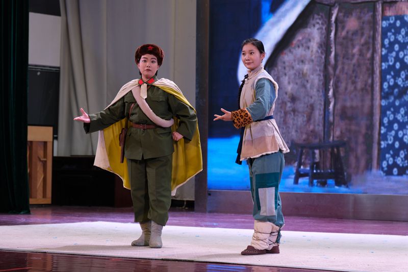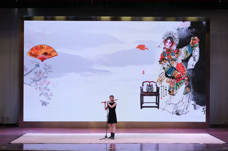 本场演出共演绎了五段经典的徽京折子戏。《红灯记》选段“痛说革命家史”、《智取威虎山》选段“深山问苦”,演员高超的唱功、精彩的表演赢得阵阵掌声。笛子独奏《京调》、京胡独奏《迎春》、唢呐拟声《智取威虎山》选段“迎来春色换人间”,乐器演奏配以轻快流畅的伴奏音型,别具一格,令人叫绝。《沙家浜》选段“智斗”中,面对刁德一的追问不舍,阿庆嫂对答如流,不卑不亢,专业演员扎实的基本功和精彩表现令观众们一次次叫好。演出高潮迭起、精彩不断,师生们近距离感受到戏曲的艺术魅力,进一步了解徽文化丰富内涵,享受了一场传统与现代交织的折子戏文化视听盛宴。