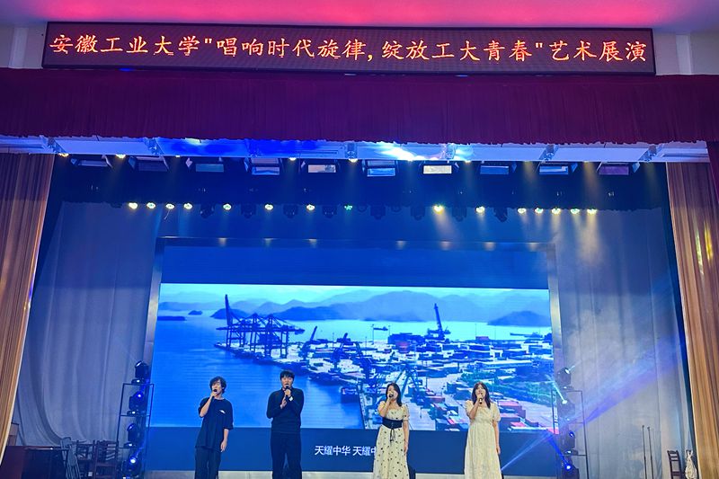 开场舞是商学院的《绣影叠香》,舞蹈中绣娘针针线线穿引其间,绣图上的仕女们栩栩如生、活灵活现。能环学院的《学习二十大,青春心向党》配乐诗朗诵展现了青年大学生坚定文化自信、在新时代伟大征程中踔厉奋发、勇毅前行的青春风采。外国语学院的舞蹈《奔跑的青春》绚丽多姿、热情洋溢,以青春之我闪烁活力光彩。计算机学院的配乐诗朗诵《与青春一起毕业的夏天》讲述了四年的生活,四年的相知,四年的缘份,你我将各奔东西的不舍之情。机械学院的串烧舞蹈《Love shot》别出心裁,舞者佩戴着羽翅,动作矫健有力,或跃起、或倒伏,在灯光的渲染下热烈奔放。化工学院的歌曲《逆光》,优美的旋律空灵深邃,婉转悠扬,让人陶醉其间。大学生艺术团带来《百年交响》配乐诗朗诵,激昂的音符,雄壮的誓言,饱满的热情抒发了对祖国的热爱。
