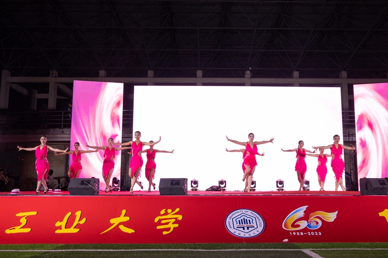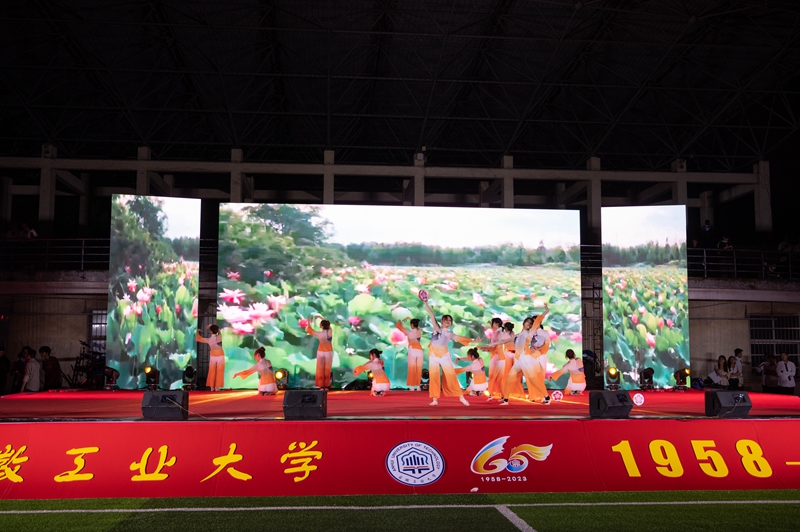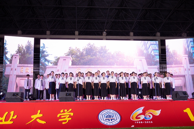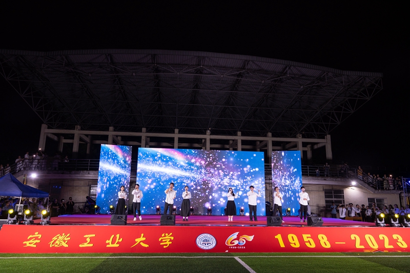 第一章“六五芳华,薪火传承守初心”在西洋器乐合奏《红色娘子军》中拉开帷幕,铿锵的旋律久久回荡在广场上。情景朗诵《百年交响》回忆了中国共产党建党百年的奋斗历程,现场观众循着朗诵者们充满感情的声音,仿佛身临其境,来到那个战火纷飞,革命先烈挺身而出的年代。第二章“难忘师恩,桃李争妍报春晖”中原创音乐剧《铸造·传承》讲述了以马钢和jinnianhui今年会为原型的两代人“为国家既出钢材,又出人才”的感人故事。古典舞蹈《绣影叠香》细腻动人的舞台表演艺术充分展现徽文化的绵延赓续。教师歌曲《再一次出发》将晚会推向高潮,歌颂了师生继承先辈优秀传统,点亮奋进之路。第三章“奔赴未来,砥砺奋进谱新篇”在歌曲《不再犹豫》中开启,激昂的音符点燃了观众们的热情。艺术与设计学院梦之韵合唱团的学生们齐唱《jinnianhui今年会校歌》,表达了对学校美好未来的憧憬,祝福母校在时代巨澜中续写荣光。