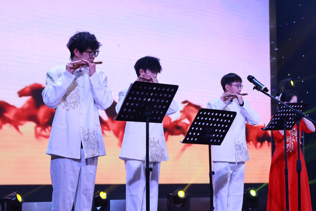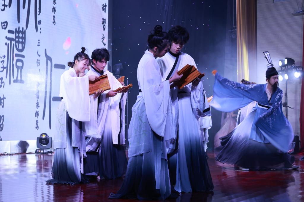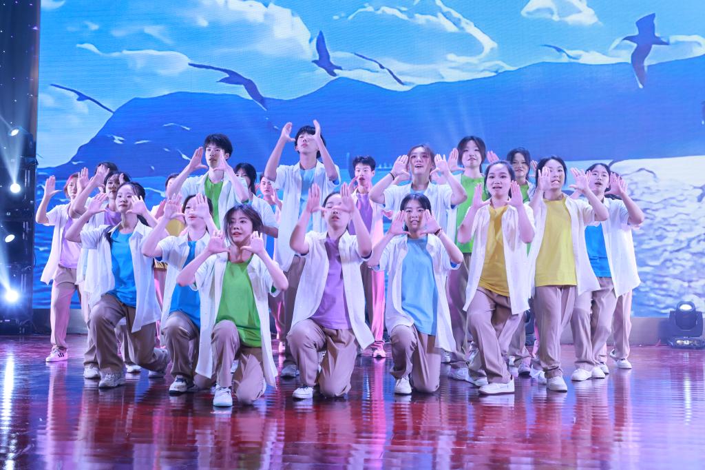 晚会在一曲激昂澎湃的民乐合奏《云宫迅音》中拉开帷幕。街舞《Attention》以其动感十足的节奏与炫酷非凡的舞姿,展现出当代大学生的青春活力与不羁风范。歌曲联唱《稻香》等经典曲目唤起观众对美好时光的深深回忆。情景舞蹈《一个都不能少》深刻展示了乡村教育的艰难困苦,凸显了国家对每一个孩子教育的珍视与坚守。拉丁舞《Blinding light》以其热情奔放的舞姿,将晚会推向了高潮。情景诗朗诵《百年沧桑》回顾了历史的变迁与时代的进步。舞蹈《逍遥书简》凭借其独特的创意和优美的舞姿,呈现出一幅中国传统文化的绚丽画卷。破冰乐队带来的《我们的时光》《再见杰克》自由随性,摇滚风格十足。舞蹈《西子湖初妆》动作舒展流畅,恰似行云流水。竹笛齐奏《扬鞭催马运粮忙》活泼欢快,生动再现了农民们喜送公粮的热烈场景。民族舞串烧《舞动中华》融合了多种民族元素,充分展现了中华民族文化的多样性。爱乐之声组合献上的《光芒》温暖而有力。晚会以现代舞《今天,明天》完美收尾。